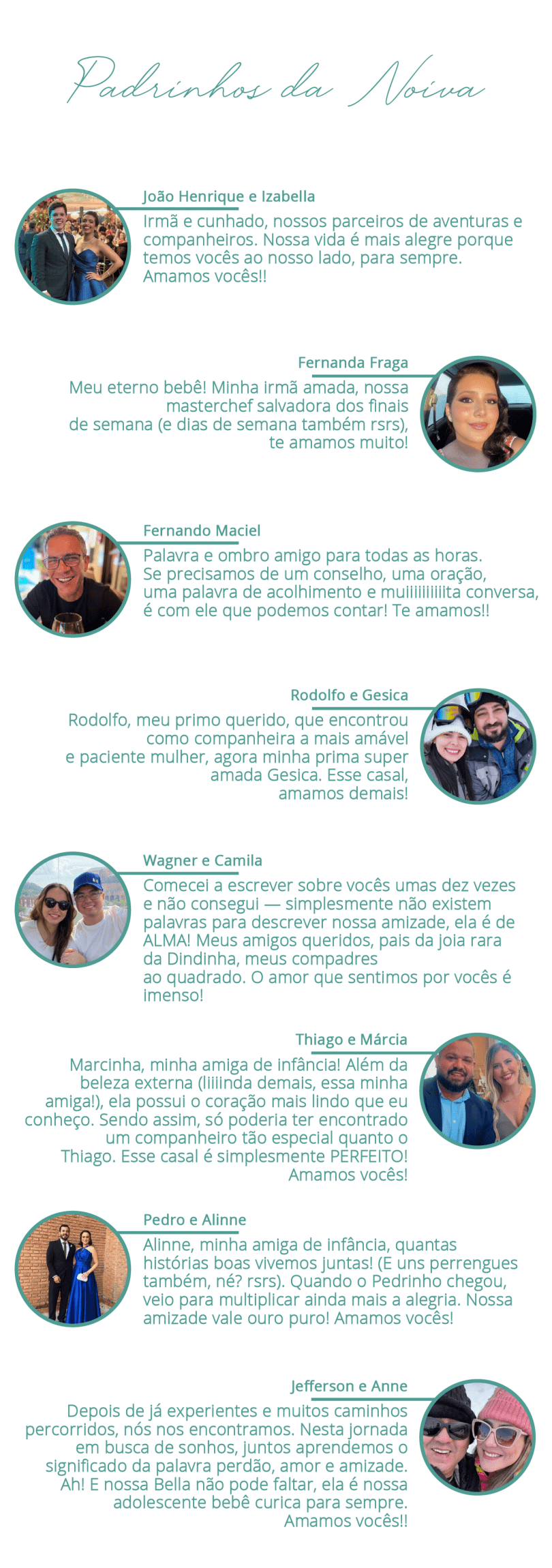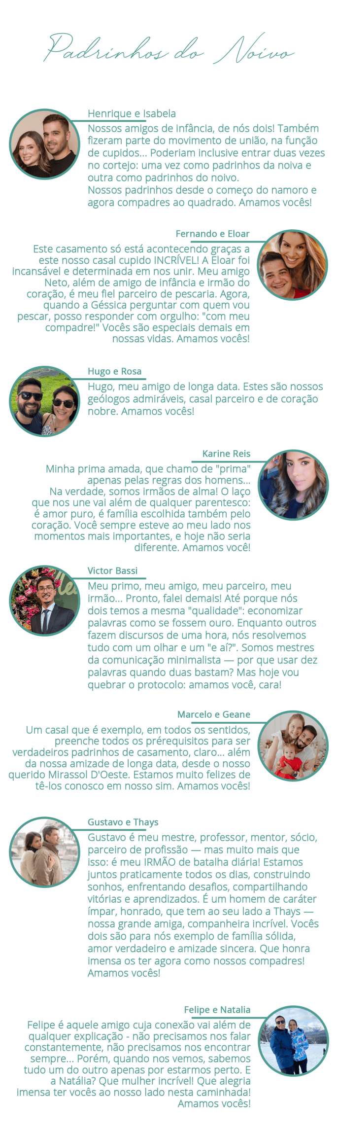 Hoje, quando olhamos para trás, entendemos: não era para ser antes. Foi no tempo certo, no momento certo, do jeitinho que só o amor sabe fazer. E agora, rodeados por quem torceu por nós, por quem nos ama e amamos, estamos prontos para escrever o próximo capítulo da nossa história de amor.